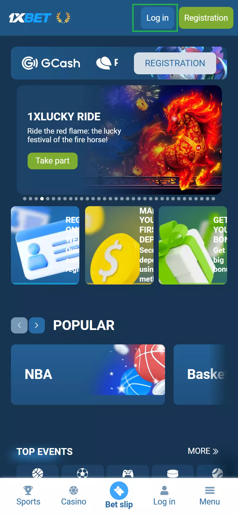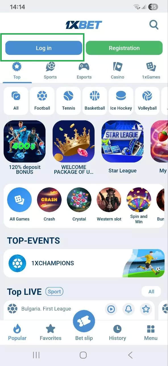 - Open and log in 1xBet