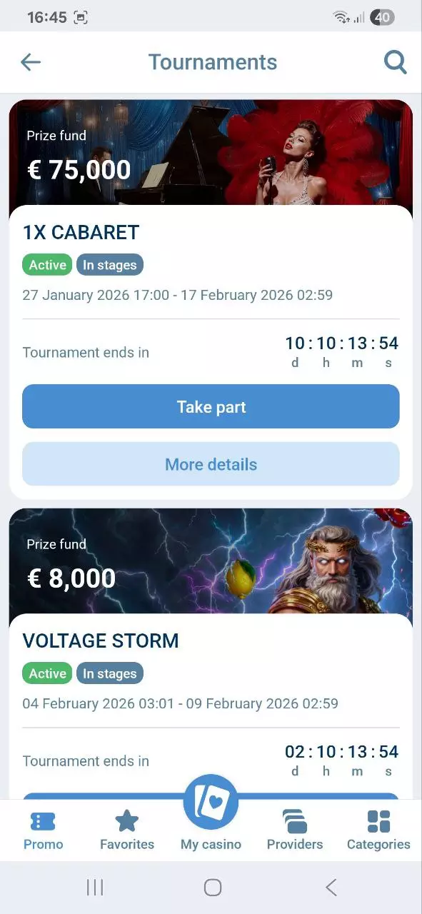 | 1xBet Network Tournaments | Platform-wide competitions with larger prize pools across multiple games |