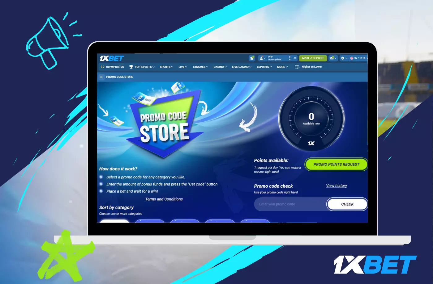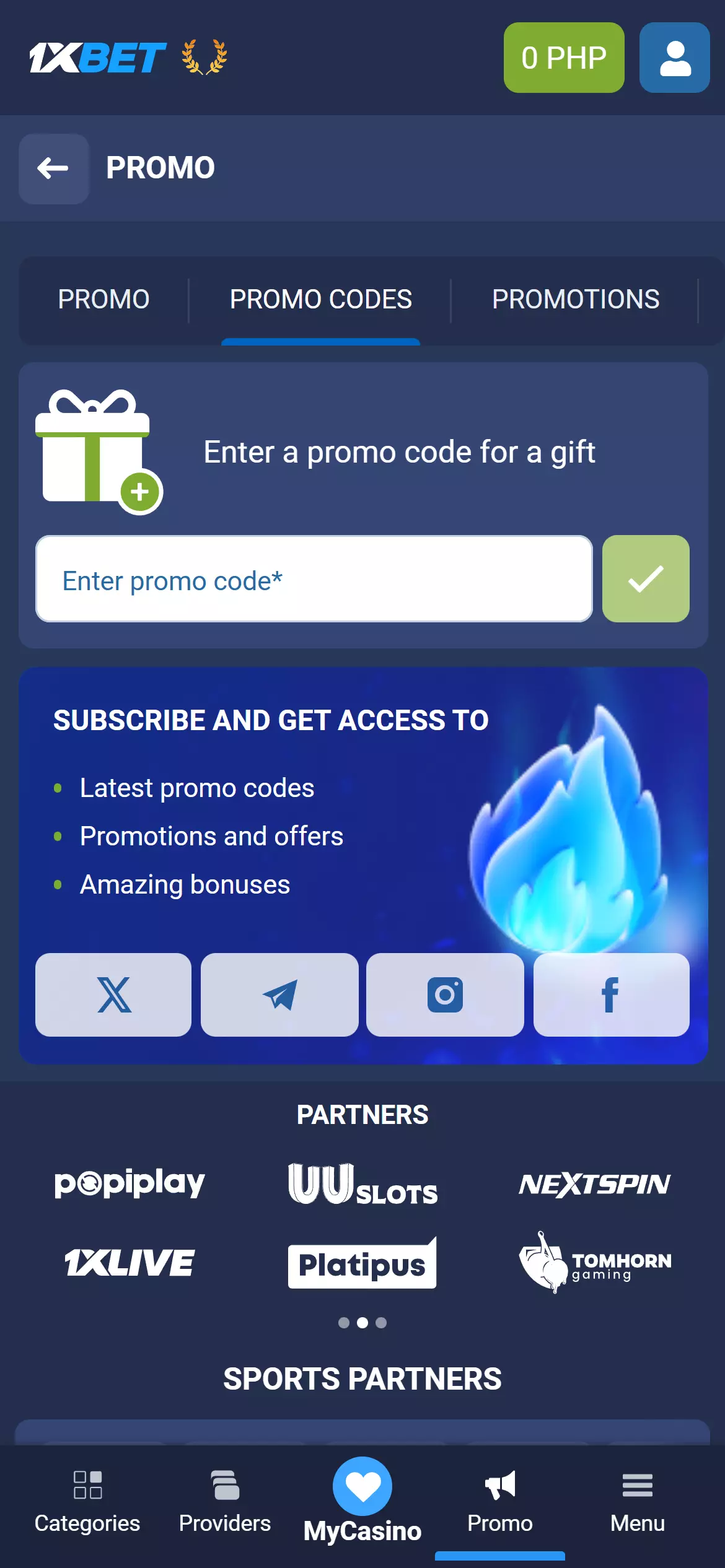 If you are a registered user, you can place bets, gather points, and trade them in for promo codes.