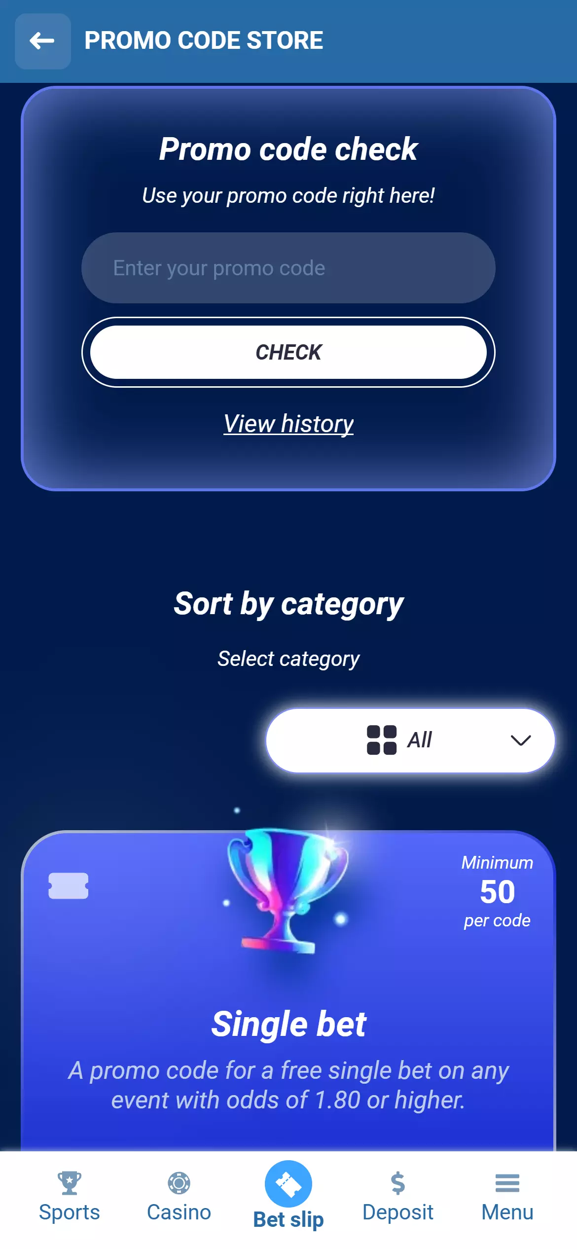 Return to your wallet and confirm the bonus was credited (Sports/Casino wallet depending on your choice).